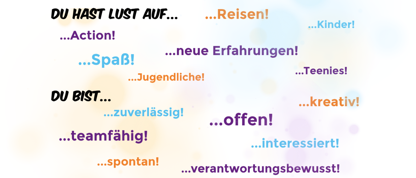 Du hast Lust auf Reisen, darauf spannende und neue Dinge zu erleben und möchtest einmal teamen anstatt Teilnehmer:in sein?
